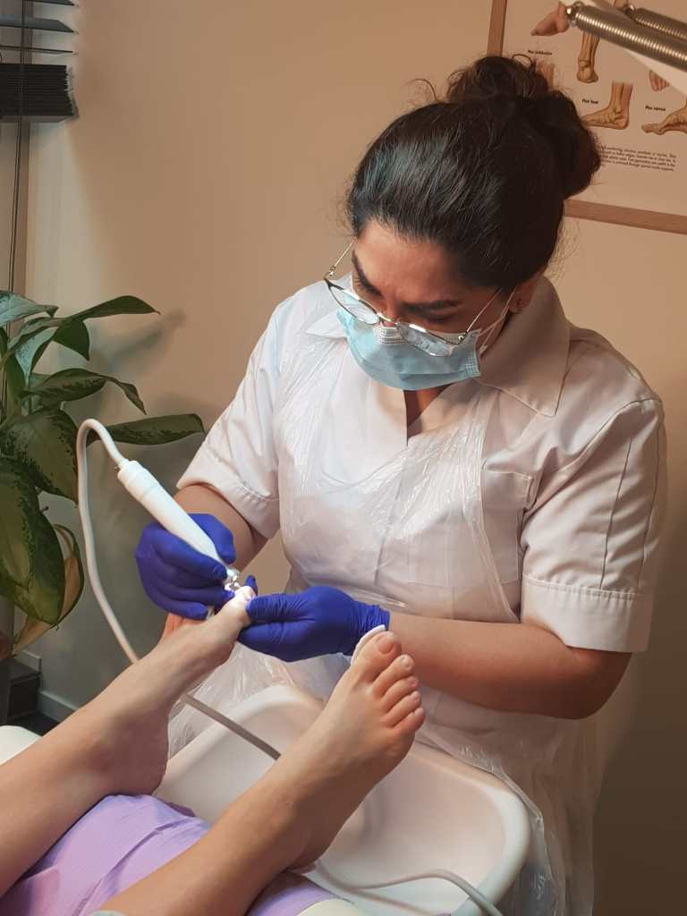 Ik ben ook gediplomeerd als Medisch Pedicure . Als medisch pedicure kan ik tevens risicovoeten, zoals de oudere , diabetische en de reumatische voet behandelen. Daarnaast heeft de medische pedicure uitgebreide kennis en ervaring op het gebied van nagelregulatie en reparatie technieken, orthese en antidruk technieken. Dit vergroot de behandelmogelijkheden van complexere voet en/of nagelproblemen.